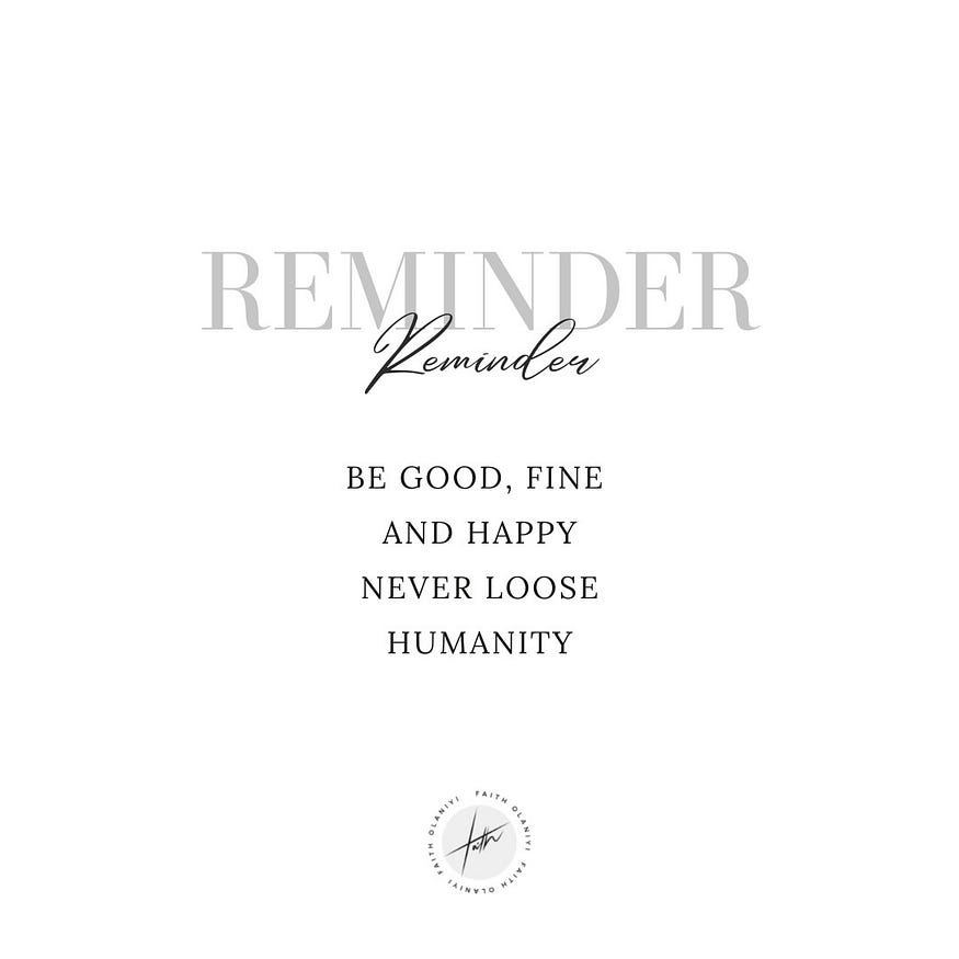 I invite you to embrace our mantra: Be good, be fine, be happy. But above all, never lose sight of your humanity.